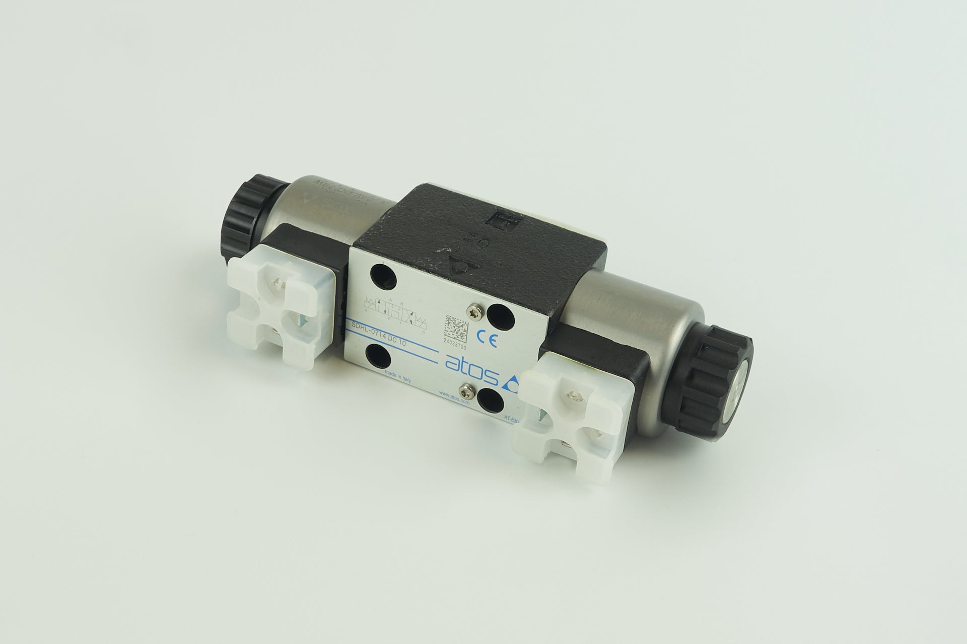 Solenoid valve, double solenoid, 3 positions, spring centered.
